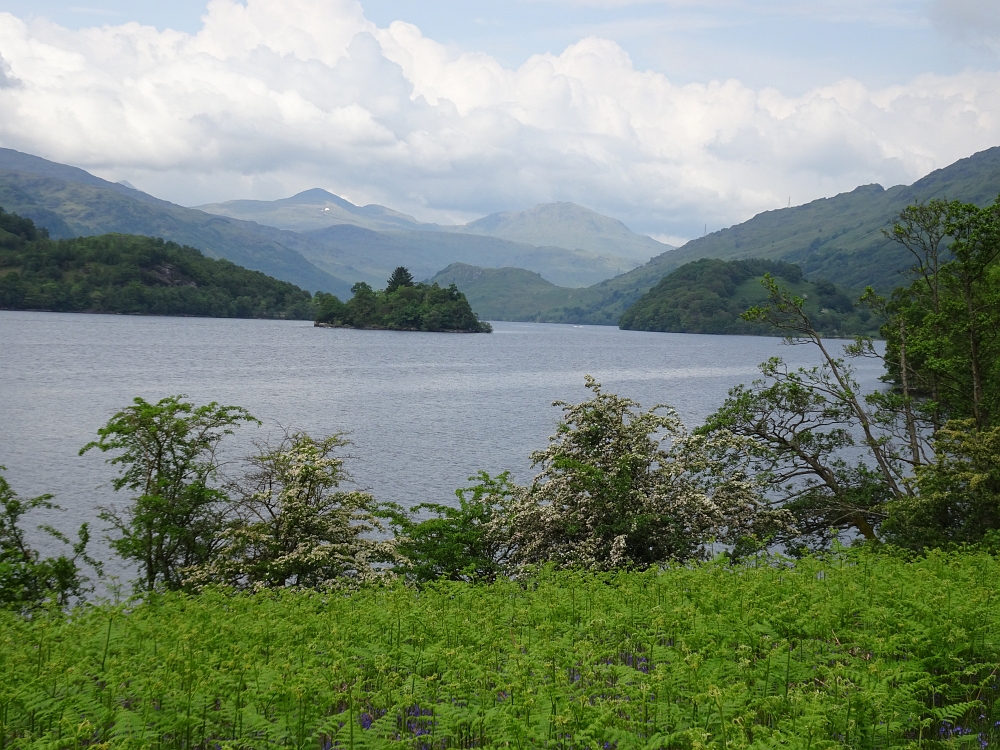 Zunächst führt unser Weg durch einfaches Wiesen- und Waldgelände. Nach ca. 2 Stunden Gehzeit haben wir erstmals Kontakt zum Loch Lomond, dem größten See Schottlands. Er wird die nächsten Tage unser ständiger Begleiter sein, bis wir die Highlands erreichen. Kurz vor Balmaha, einem beliebten Ausflugsziel und Beginn der Highlands, erklimmen wir den Conic Hill. Eine sehr schweißtreibende Angelegenheit. Am Gipfel angekommen werden wir jedoch mit einem wunderschönen Ausblick auf den Loch Lomond belohnt, den wir längere Zeit im Gras liegend genießen. In Balmaha selbst ist uns zu viel Trubel, so dass wir nach einer nur kurzen Rast immer am See entlang zu unserem nächsten Ziel dem „Rowardennan Lodge Youth Hostel weiterwandern. Nach etwa einer Stunde kommen wir dort an, rundum ziehen Gewitterwolken auf, die uns jedoch nichts mehr anhaben können. An der Jugendherberge, einem sehr schön gelegenen ehemaligen Jagdschloss, machen wir erste Bekanntschaft mit den schottischen Stechmücken, den Midgets, die in Scharen über uns herfallen und uns ordentlich „vermöbeln“.