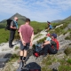 Die Schlussetappe steht auf dem Programm, unser Ziel Fort William liegt in greifbarer Nähe. Der Weg verläuft zunächst 250 hm steil ansteigend und führt uns durch ein größtenteils abgeholztes Waldgebiet. Nach Erreichen der Passhöhe zeigt sich zum ersten Mal der „Ben Nevis“, der höchste Berg Großbritanniens. Er wird von nun an unser ständiger Begleiter bis Fort William sein. Bei km 18 ist es dann endlich soweit, Fort William liegt in Sichtweite! Nach ein paar Kilometern Abstieg kommen wir in Fort William an, es ist geschafft, rund 160 km liegen hinter uns!! Das obligatorische Erinnerungsfoto zeigt verständlicherweise nur strahlende Gesichter.