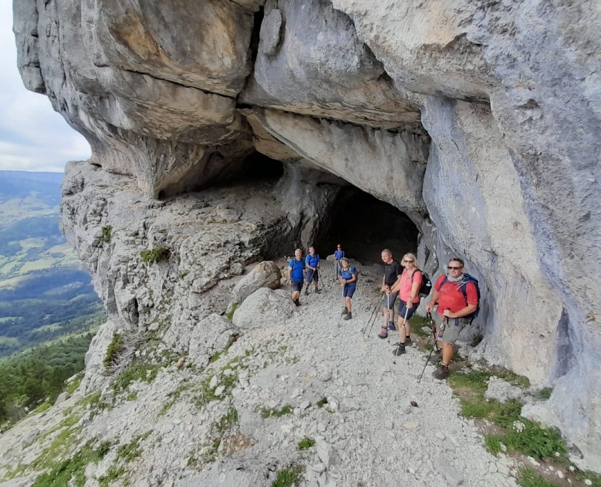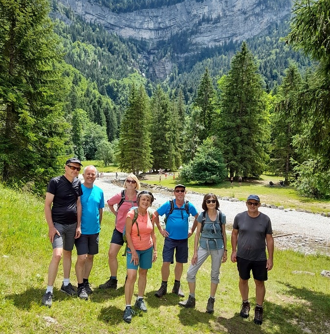 Mit dem Kleinbus von Stadtmobil Karlsruhe verlief die Anfahrt über die Schweiz, vorbei am Genfer See, entspannt und problemlos. Bereits um 14 h hatten wir, eine „8- Mann“ – starke Truppe mit 3 Frauen, unser Ziel in St. Pierre d’Entremont erreicht, so dass bei Prachtwetter genügend Zeit für eine Eingangstour zur Verfügung stand.