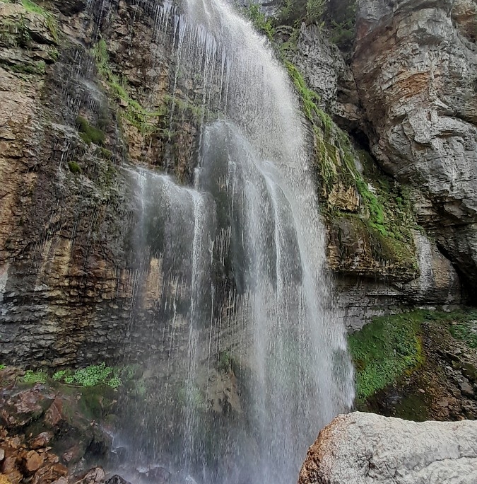 Sozusagen vor der Haustür ging es in den Cirque de Saint Meme, einem Talschluss, der von 500 m hohen Kalksteinwänden umragt ist. Und an diesen Wänden rauschen die 3 Wasserfälle La Pisse du Guiers, la Grande Cascade und die Cascade des Sources ins Tal. Über leichte, Seil gesicherte Steige konnten wir schließlich die rauschenden Wasser aus der Vogelperspektive genießen. Als Schmankerl führte der Weg ins scheinbare Nichts: lediglich durch eine Höhle, die Grotte du Guiers, konnten wir den Wassern entrinnen. Welche Ouvertüre!